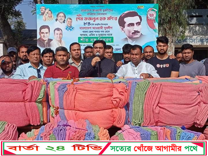 পাবনায় শেখ ফজলুল হক মণির ৮৪তম জন্মদিন উপলক্ষে জেলা যুবলীগের শীতবস্ত্র বিতরণ।