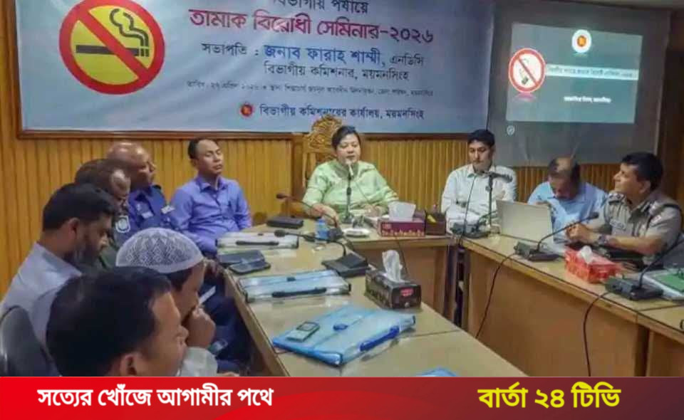 ময়মনসিংহে বিভাগীয় পর্যায়ে তামাক বিরোধী সেমিনার-২০২৬ অনুষ্ঠিত - Barta24TV.com