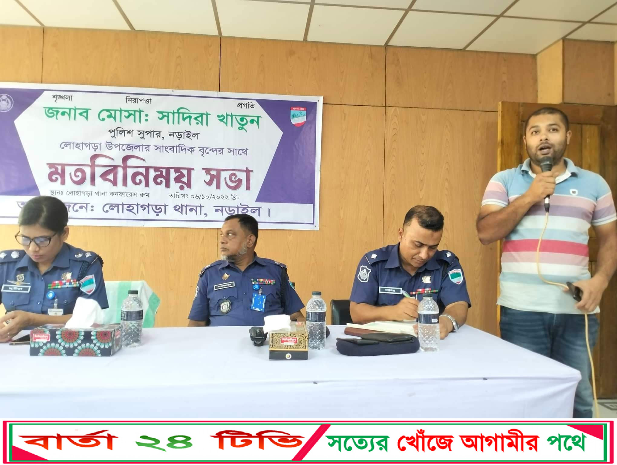 এসময় উপস্থিত ছিলেন, নড়াইল জেলা অতিরিক্ত পুলিশ সুপার মো. কামরুজ্জামান(ক্রাইম), অতিরিক্ত পুলিশ সুপার মো. দোলন মিয়া(নড়াইল সদর সার্কেল), জহুরুল হক মিলু (এস এম মিলন barta 24 tv)(আজকের পত্রিকা), সৈয়দ খায়রুল আলম(সম্পাদক ২বাংলা), রেজাউল করিম (সমকাল), মো. ওবাইদুর রহমান (আলোকিত বাংলাদেশ), কাজী আশরাফ(এশিয়ানটিভি)মো.খায়রুল ইসলাম(মাইটিভি), বিপ্লব রহমান(যুগান্তর), মো. হাবিবুর রহমান(সকালের সময়), ইমরান হোসেন(আনন্দ টিভি), মো. পিকুল আলম (সকালের সময়), কাজী খসরুজ্জামান লিটন(ফালগুনী টিভি) প্রমুখ। সভায় সাংবাদিকরা উপজেলার সার্বিক আইন-শৃঙ্খলা উন্নয়নে ও মাদক নিয়ন্ত্রণে পুলিশের কার্যক্রম জোরদার করার দাবি জানান।